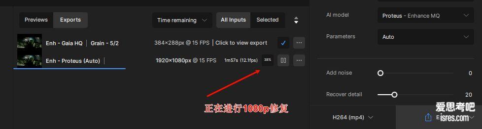 本次实测成功把2012年存的384*288视频修复至1080p高清,软件虽然是英文界面。但要操作的按钮就那么几个,使用上并没有门槛