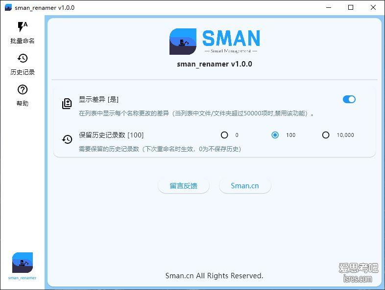 本文《SmanRenamer,一款通过理解用户意图实现批量重命名软件》由爱思考吧 isres.com 分享,转载请注明出处。本文网址:https://www.isres.com/wenjian/274.html